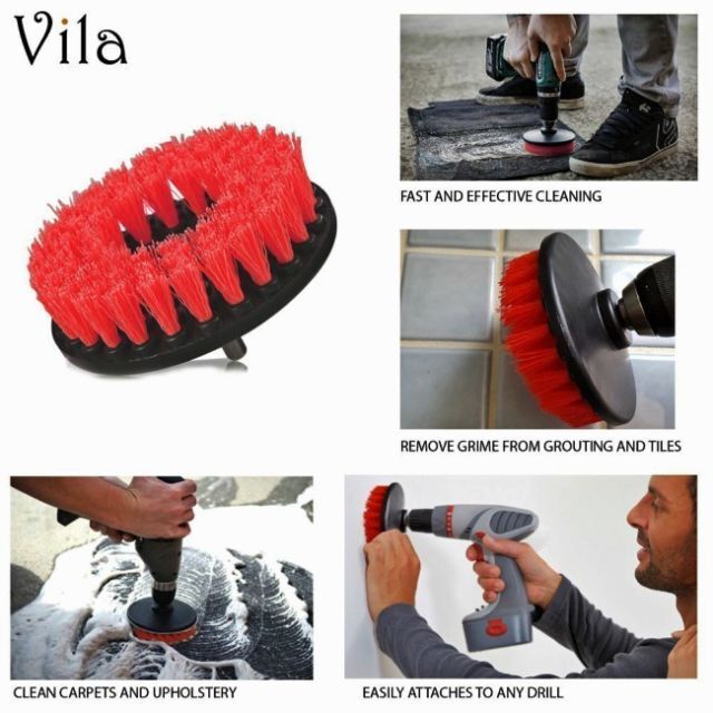 Cleaning Supplies - Drill Brush - The Ultimate Stiff Bristle Cleaning Attachment Kit - Outdoor - Fire Pit - Fountain - Scrub Brush - Garden - Patio - Grout Cleaner - Concrete - Marble - Headstones
