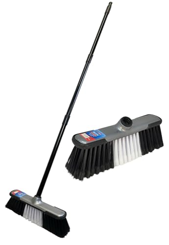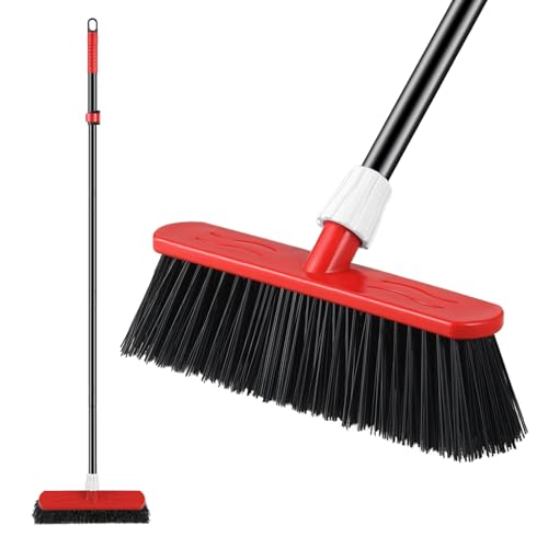 Yard Brush Heavy Duty Outdoor Concrete Broom Telescopic Long Handle with Stiff Bristles for Cleaning Scrubbing Deck Driveway Yard Patio Wood Stone Tile Garden Warehouse Leaves Lawn