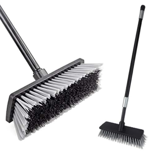 YONILL Deck Brush with Long Handle - Floor Scrub Brushes for Cleaning Shower, Stiff Bristle Scrubbing Brush, 50" Floor Scrubber Brush for Bathroom, Bathtub, Tub, Tile Floors, Garage and Patio