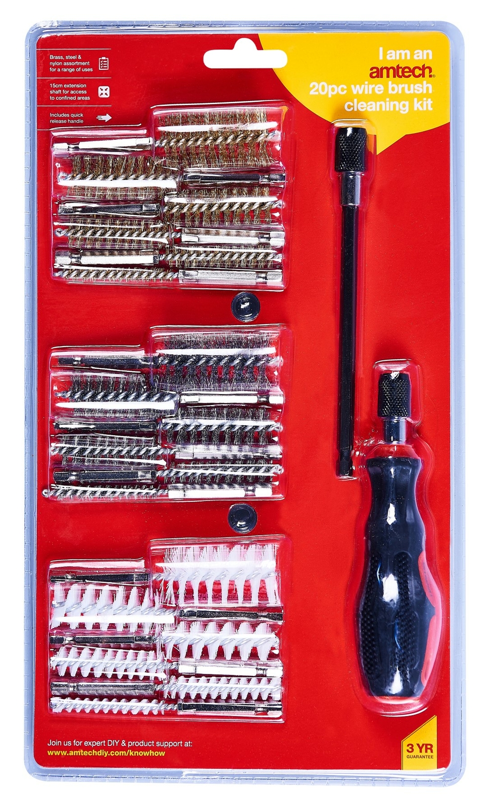 20Pc Wire Brush Cleaning Kit Patio Moss Weeds Steel Brass Nylon Hex Drive Shank