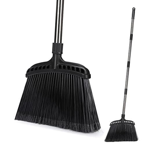 Myiosus Garden Broom Outdoor, Yard Brush Heavy Duty Outdoor Angle Broom with 38cm Stiff Bristle & 140cm Stainless Steel Handle, Sweeping Brooms for School Factory Patio Garage Driveway Cleaning