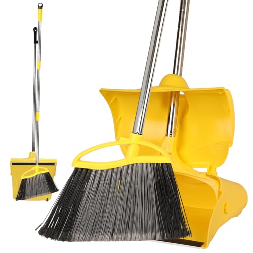 MuLing Heavy Duty Broom Outdoor and Dustpan, 145CM Long Handle Heavy Duty Broom with Stiff Bristles, Angle Sweeping for Floor Cleaning Garage Patio Garden House and Kitchen, Dustpan and Sweeping Brush
