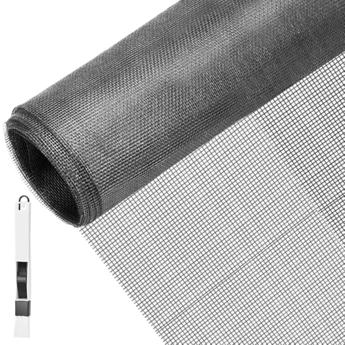 BUZIFU Window Mesh 150 x 270cm Fiberglass Fly Screen Wire Insect Mesh Replacement Cuttable Mosquito Net With Cleaning Brush for Windows Doors Patio, Cat-Proof, Grey