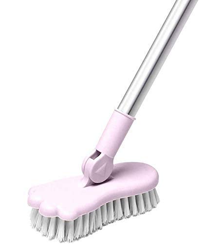 Floor Scrubbing Brush 47.2 inch with Adjustable Long Handle & Detachable 180° Rotatable Head Stiff Bristles Extensible Grout Cleaning Brush for Bathroom Tub Tile Patio Indoor Scrubber (Pink)