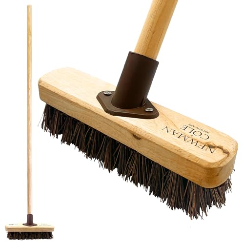 Deck Scrubber Brush with Handle - Wooden Pole Stiff Floor Broom Head Hard Bristle - For Cleaning Patio Decking & Garden Pathways By Newman and Cole (Unassembled, Pack of 1)
