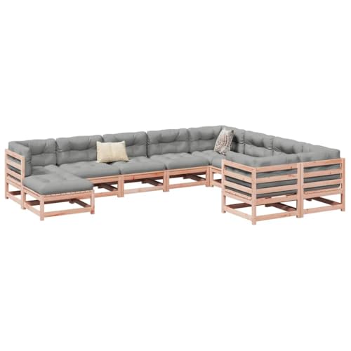 Teenpull 10-Piece Garden Sofa Set, Solid Wood Douglas Fir Outdoor Seating Set with Cushion, Patio Lounge Furniture Set for Balcony, Patio
