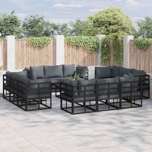 Teenpull Garden Sofa Set 13 Pieces Black Aluminium Modular Design Outdoor Cushion Patio Furniture Lounge Sofa for Balcony