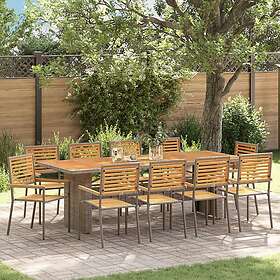 vidaXL 11-delars trädgårdsdining set grå poly rattan acacia, stapelbara trädgård