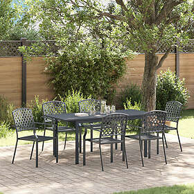 vidaXL Outdoor Dining Set 7 Piece Steel Garden Patio Dinner Table and Chair Blac