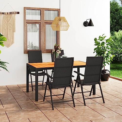 Juroupi 5 Piece Garden Dining Set Black Poly Rattan,Patio Dining Sets,Table Chairs Outdoor,Garden Furniture,Garden Dining Set-3379402