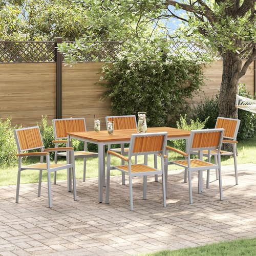 LAPOOH Garden Dining Set Set of 7 Grey, Wood Metal Sturdy,Patio Dining Sets,Table Chairs Outdoor,Garden Furniture,Garden Dining Set-3284352