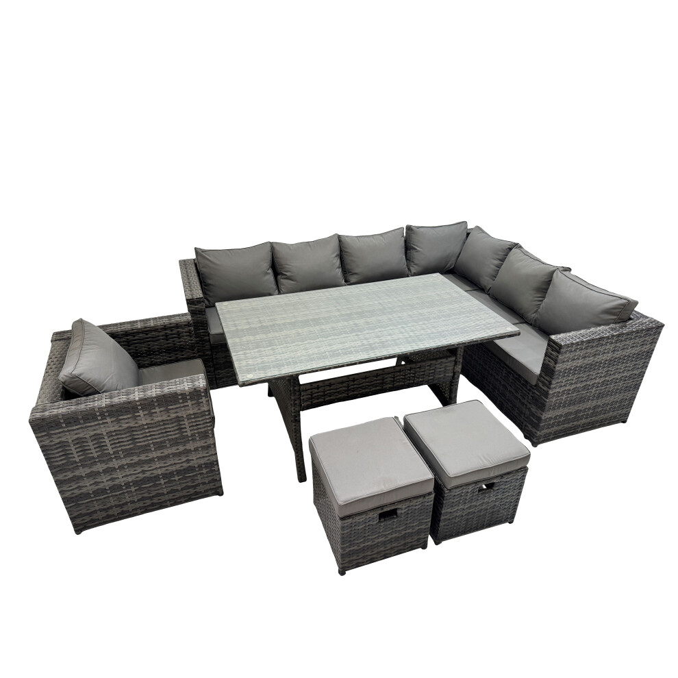 FMSGarden Rattan Garden Furniture Set Outdoor 10 Seater Patio Dining Corner Sofa Sets with Dining Table 2 Chairs 2 Small Stools Dark Grey Mixed