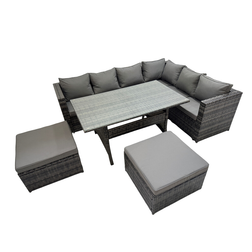 Fimous Rattan Garden Furniture Set Outdoor 7 Seater Patio Dining Corner Sofa Sets with Dining Table Big Footstool Light Grey Mixed