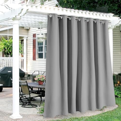 Hiseng Waterproof Outdoor Curtains, 1 Panel Pergola Curtains Eyelet Top Curtain Privacy Thermal Insulated Sunshade Curtains for Garden Gazebo Porch Patio (Light grey,52x71in)