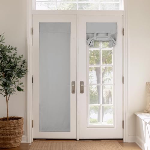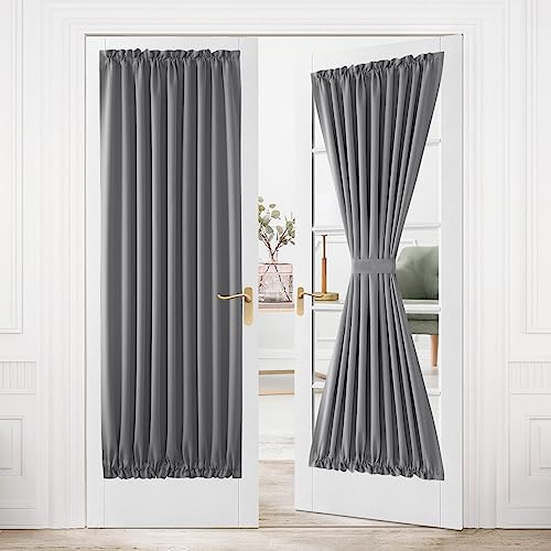 DWCN French Door Curtains – Rod Pocket Thermal Blackout Curtain for Doors with Glass Window, Kitchen and Patio Doors for Privacy, 36 X 80 Inches Long, 1 Curtain Panel with Tieback, Grey