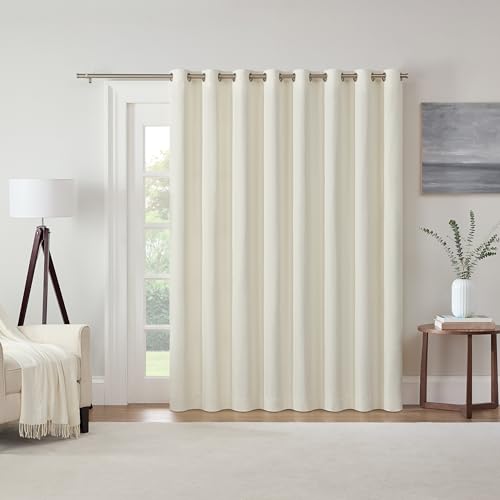Eclipse Extra Wide Grommet Curtain, Kendall Sliding Patio Door Curtain Panel, Solid Textured Thermal Insulated and Noise Reducing Curtains, (1 Panel), 84 in Long x 100 in Wide, Ivory White