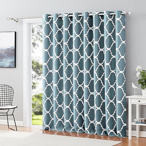 Melodieux Moroccan Wide Curtains Room Darkening Blackout Drape for Extra Wide Window, Patio Sliding Glass Door, 1 Panel (100 x 84 Inch, Dusty Teal)