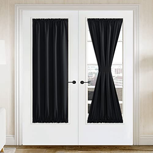 NICETOWN Blackout Door Curtain - Privacy Thermal Insulated French Door Cover for Kitchen Room Darkening Window Curtains for Patio Front Glass, W42 x L72 inches, 1 Panel, Black