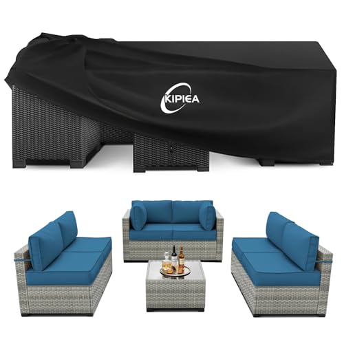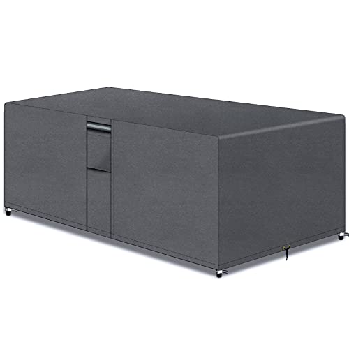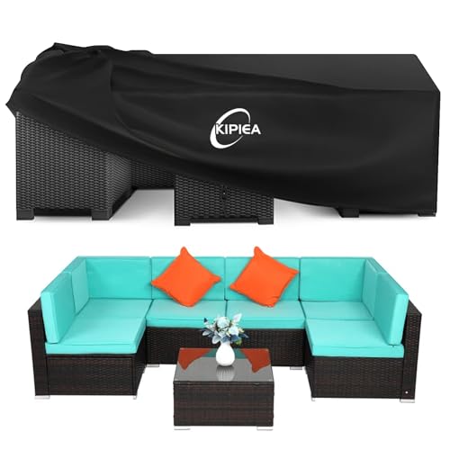 Kipiea Garden Furniture Covers Waterproof for Outdoor Rattan Table Cover Windproof, 420D Heavy Duty Patio Furniture Sofa Set Covers, Anti-UV, No Tear, No Fading, Rectangular 229 x 147 x 71cm