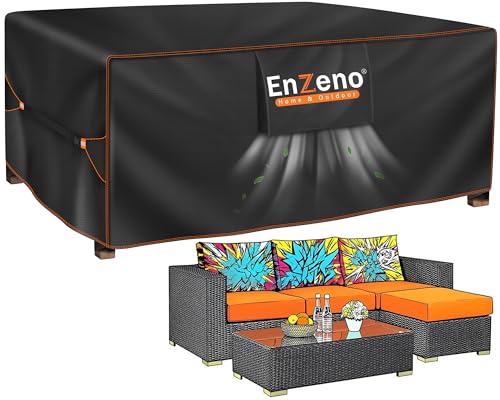 Enzeno garden furniture covers waterproof for outside,125x125x74cm outdoor furniture cover 210D oxford fabric outdoor square table cover with buckle strap,rattan patio cube set covers