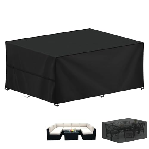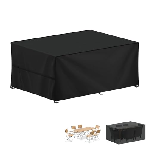 LAMUNI Garden Furniture Cover Waterproof Outdoor Rectangular Patio Table Set Covers, 420D Oxford Fabric Rattan Sofa Cover Windproof Outdoor Table Cover Anti-UV Patio Furniture Covers, 300x200x80cm