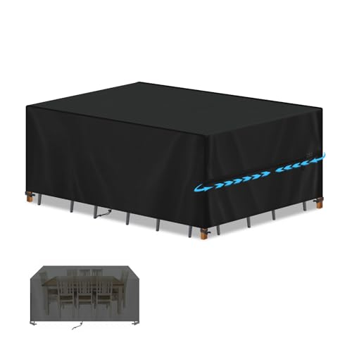 Kipiea Garden Furniture Covers Waterproof, 420D Heavy Duty Oxford Fabric Outdoor Furniture Cover for Table and Chairs Windproof, Patio Set Covers Anti-UV, Ripstop - 280 x 213 x 71cm