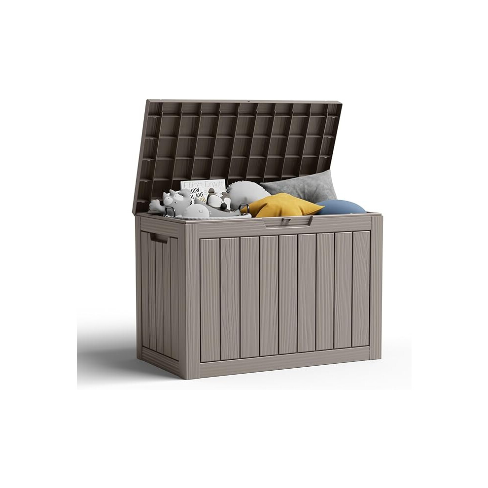 31GAL Resin Deck Box, Lockable Patio Outdoor Storage Box - Grey