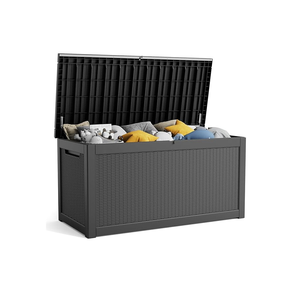 Grand patio Deck Box 480L Outdoor Storage Box with Lid Graden Furniture Storage Box Cushion Box with Smooth Wheels Easy to Move Storage Containers for Tools Pool Accessory Pillows -Black