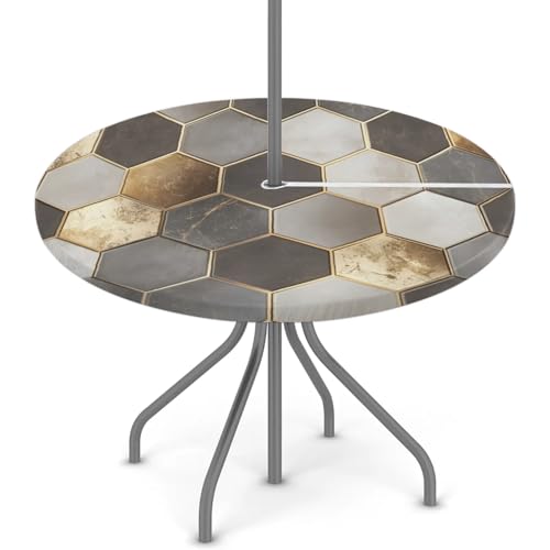 Tablerazzi Round Outdoor Tablecloth with Umbrella Hole and Zipper Yellow Gray Fitted Tablecloth Wipeable Table Cloth Round Patio Table Cover for Picnic, 36''-44''