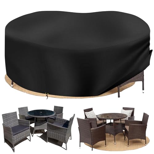 Round Patio Table Chair Set Cover, 210D Oxford Cloth Dust Proof Anti Fading UV Resistant Water Resistant Patio Table Chair Set Cover Outdoor Table Cover (Zerodisgd6h5ymseg-12)