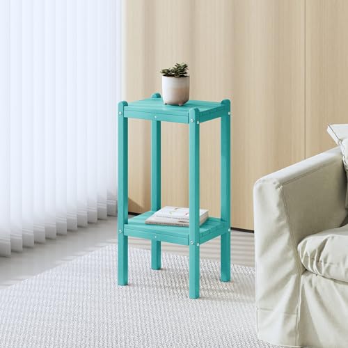 Costaelm Outdoor Side Table, 2-Tier Small Patio Coffee Tables for Outside, Outdoor End Tables for Patio, Adirondack Side Table for Outside, Outside Table for Pool, Porch, Garden, Turquoise