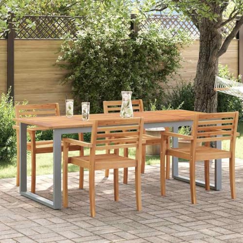 SooIarix Modern 7-Piece Garden Dining Set, Grey Solid Acacia Wood, Steel Legs, Rectangular Outdoor Patio Table for Outside Patios, Family Meals