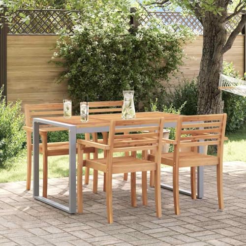 SooIarix Garden Dining Set 7 Pcs, Brown Solid Acacia Wood Outdoor Table, Patio Dining Table for Outside Patios, Oiled Finish, 150x90x74 cm