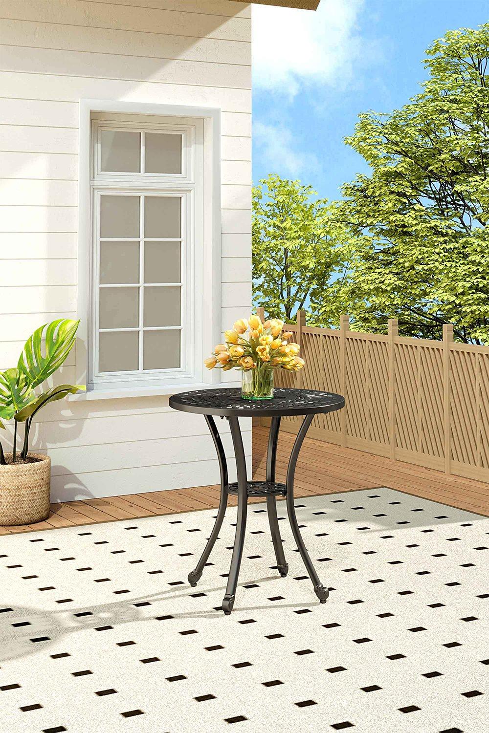 Diamond Grid Hollowed Out Cast Aluminum Round Patio Dining Table for Outdoor Garden