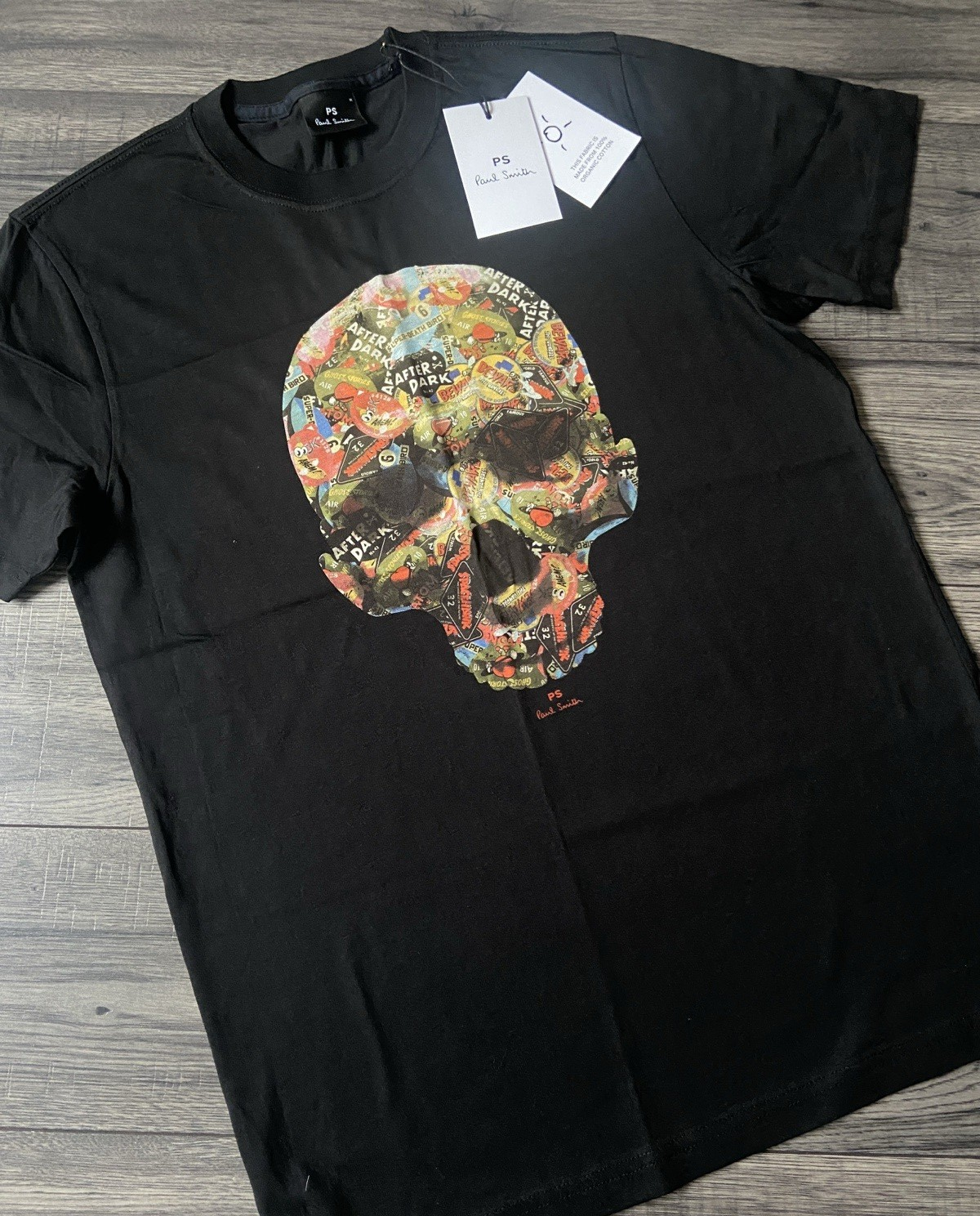 PAUL SMITH Skull Graphic T Shirt Black Slim Fit 100% organic cotton PS Small