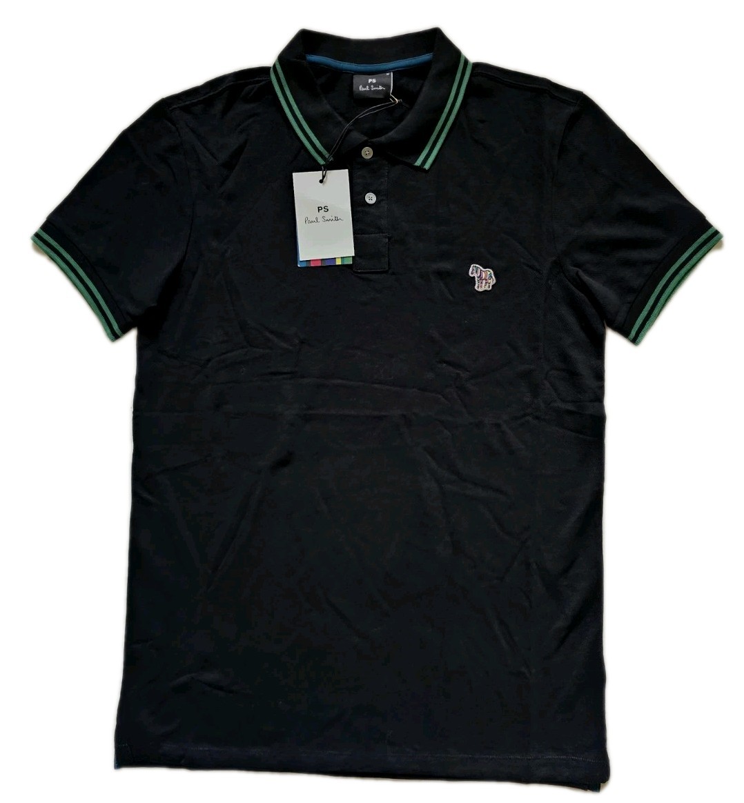 PAUL SMITH Zebra Polo Shirt Mens M Slim Fit Black Cotton Green Tip