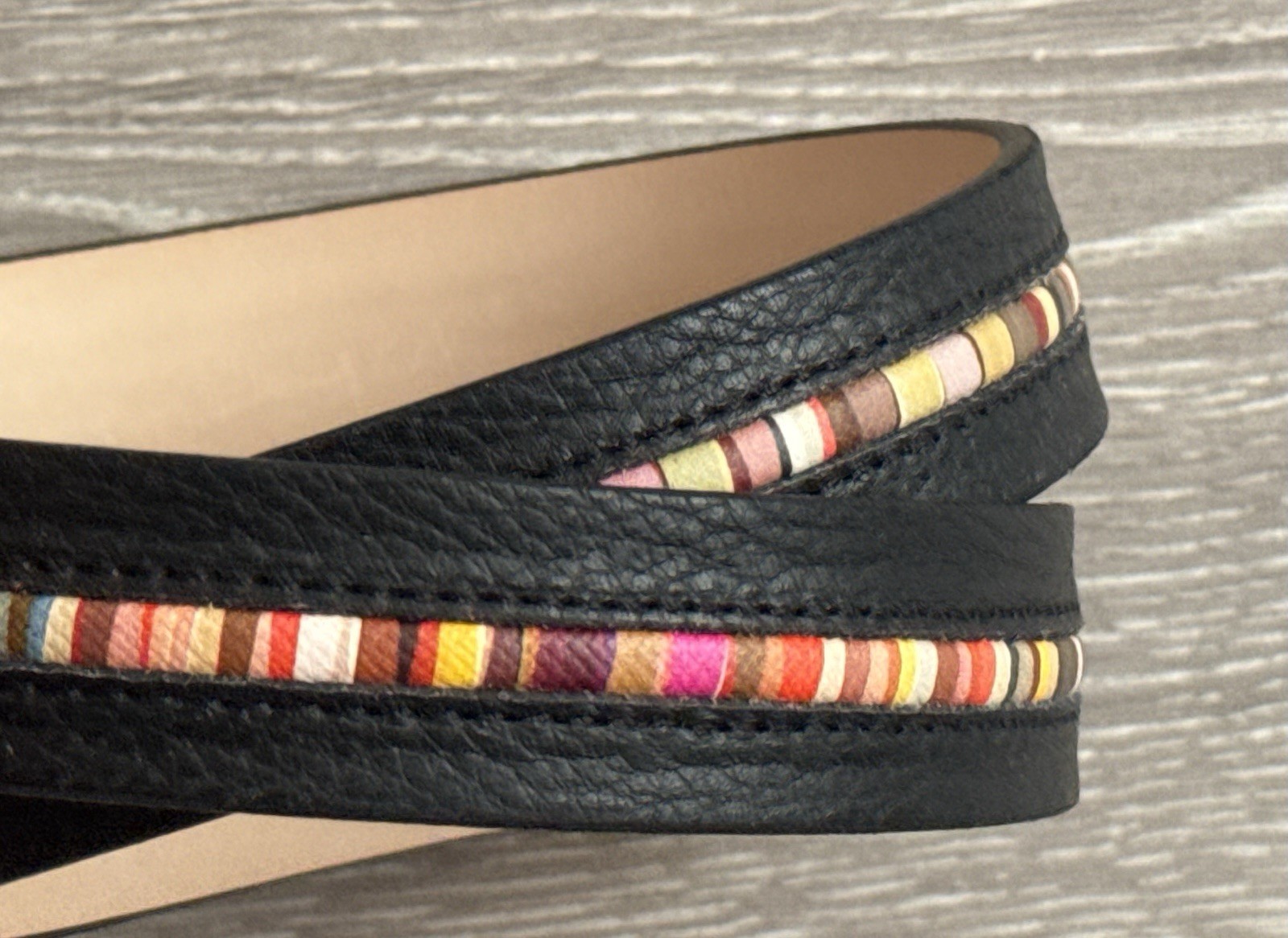 Paul Smith Black Leather Belt With Swirl Stripe Womens 80cm 31 - 34 inches
