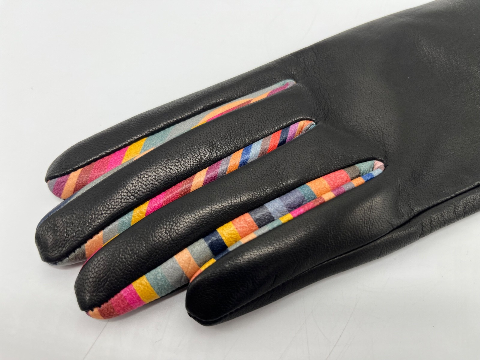 PAUL SMITH 'Swirl' Pipped Stripe Black Leather Women's Gloves Medium (M)