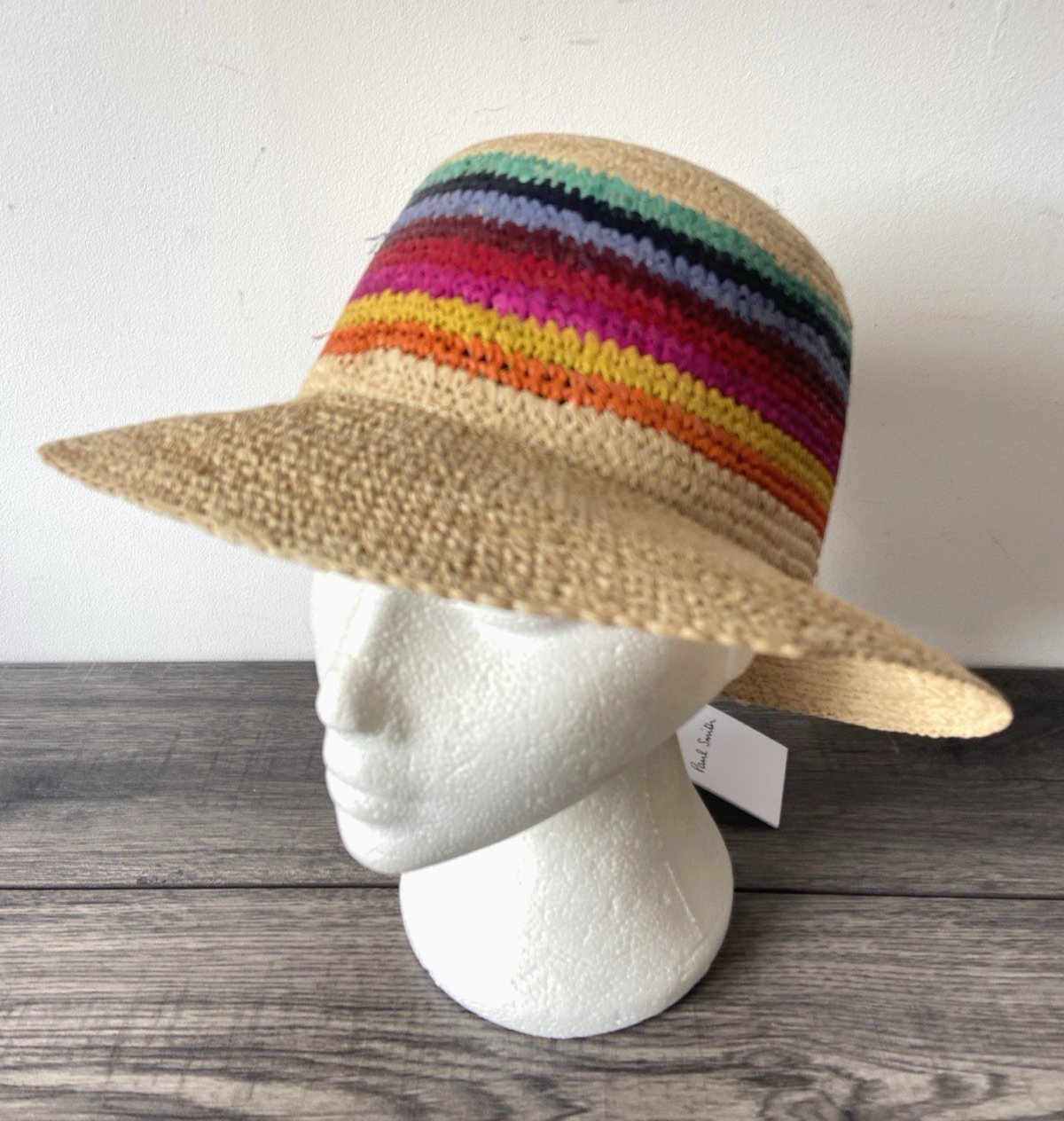 PAUL SMITH NATURAL STRAW SWIRL STRIPE HAT SIZE S RETAIL £145 MADE IN ITALY BNWT