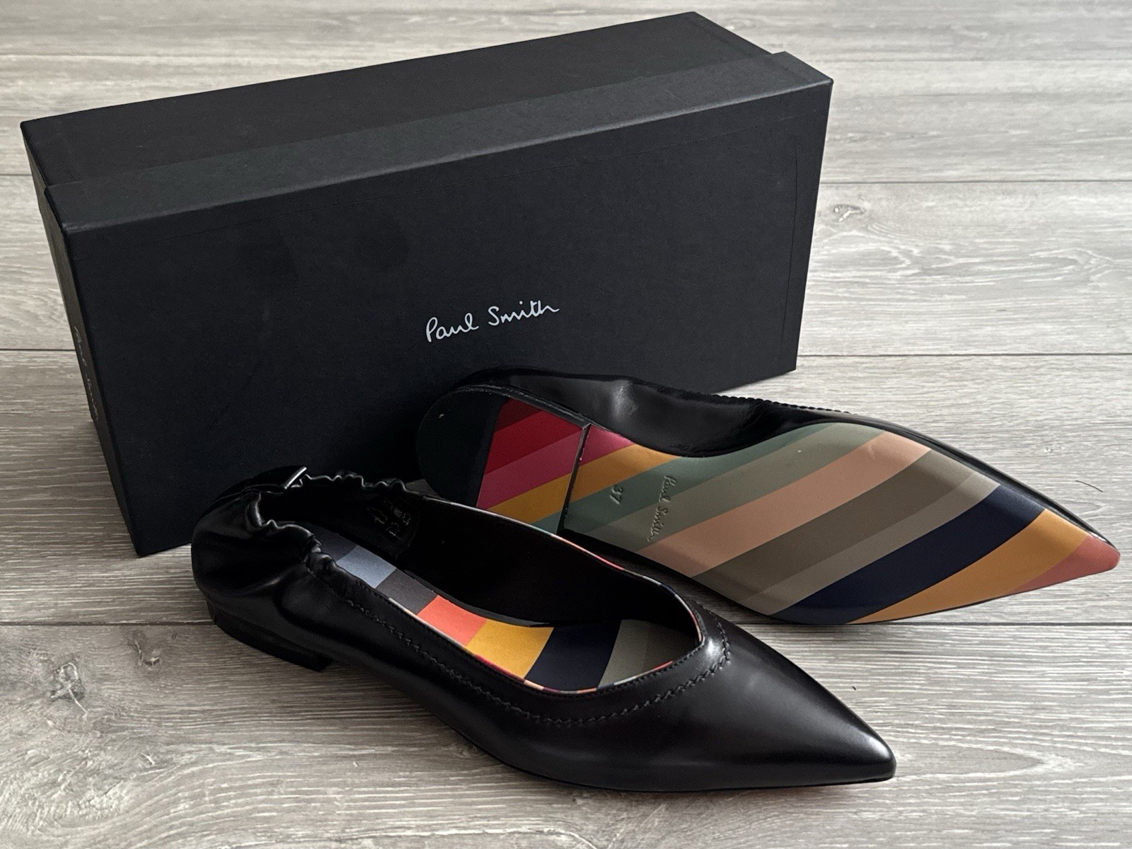 Paul Smith Black Leather Flats Pointed Toe Shoes Womens Swirl Lima EUR 37 | UK 4