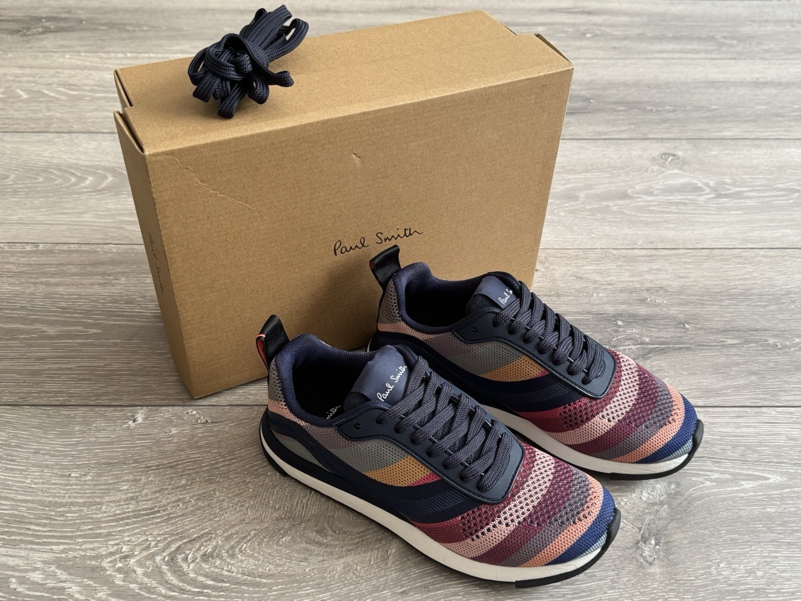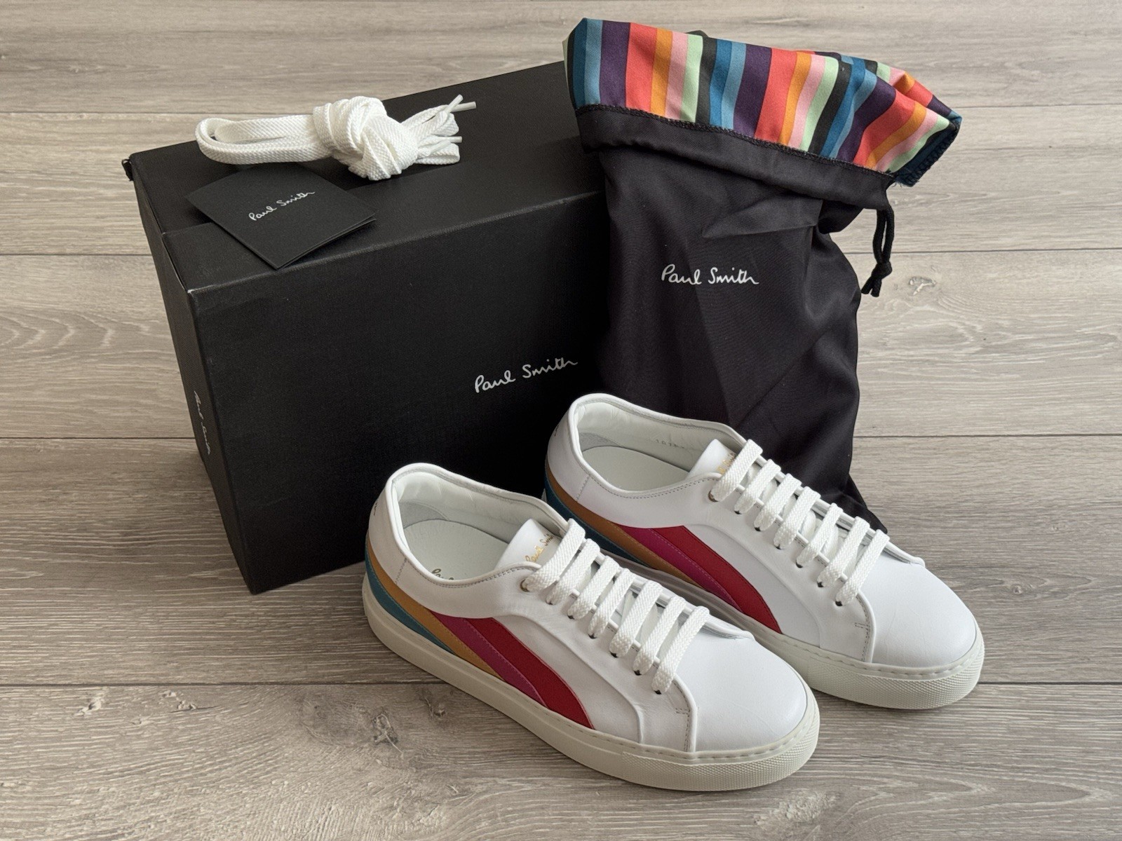PAUL SMITH Swirl ‘Ware’ multi stripe leather trainers sneakers UK7 EU41