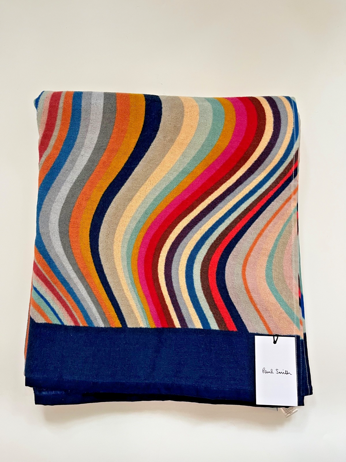 Paul Smith Signature Stripe Swirl Beach Towel 100% Cotton Navy Blue Pool Holiday