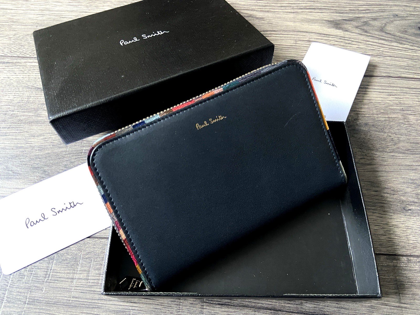 PAUL SMITH SWIRL STRIPE TRIM LEATHER PURSE MADE IN SPAIN RETAIL £250 BNIB