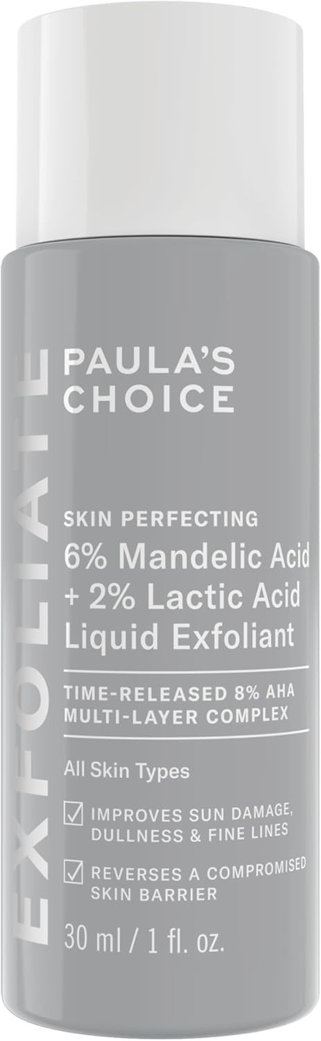 Paula's Choice SKIN PERFECTING 6% Mandelic Acid + 2% Lactic Acid AHA - AHA Exfoliant - Visibly Reduces Fine Lines and Wrinkles - with Yarrow Extract - All Skin Types - 30 ml