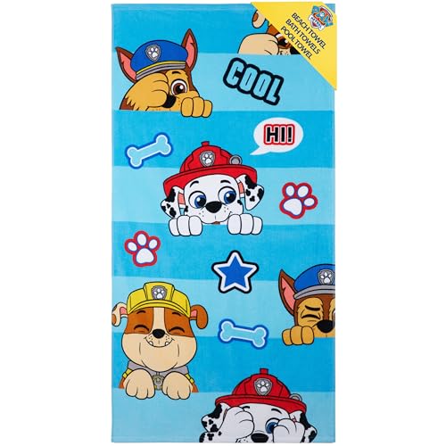 Character World Paw Patrol Kids Towel | Super Soft Feel, Heya Design Marshall, Chase, Rubble & Skye | Perfect The Home, Bath, Beach & Swimming Pool | One Size 70cm x 140cm