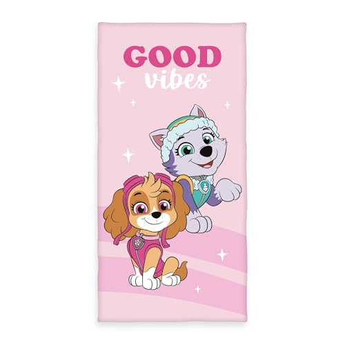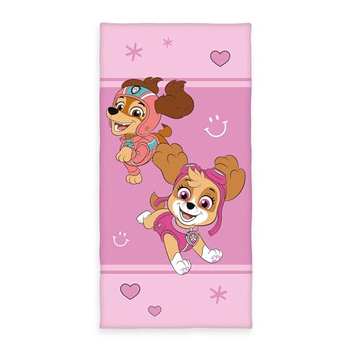 Herding Paw Patrol Bath Towel, Approx. 70 x 140 cm, 100% Cotton/Velour, Pink