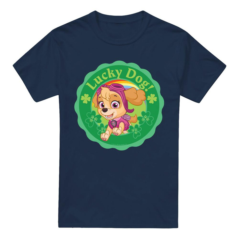 (S, Navy) Paw Patrol Mens Lucky Dog St Patricks Day T-Shirt