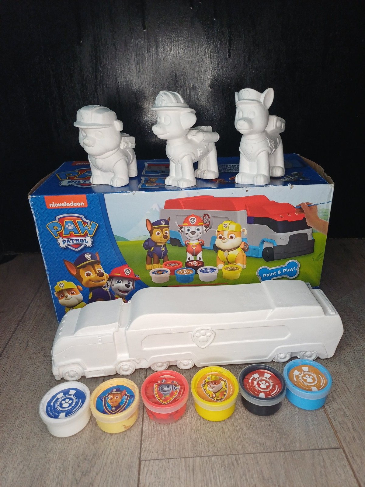 Paw Patrol Paint Your Own Figurines Art Craft Set 4 Paw Figures 8 Paints Brush Bookmark