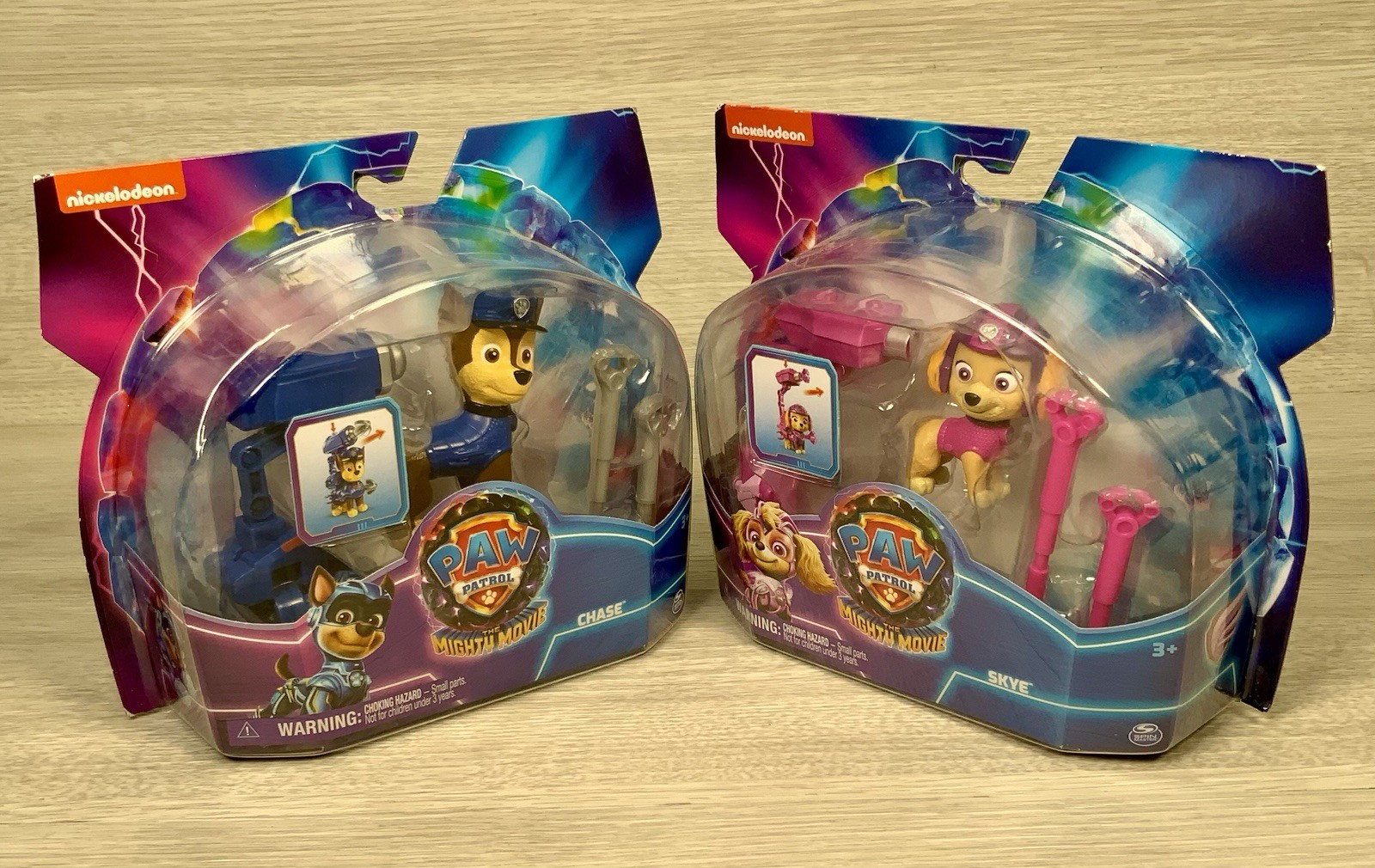 Paw Patrol The Mighty Movie (2 Figure Pack) Bundle Chase + Skye with Launchers