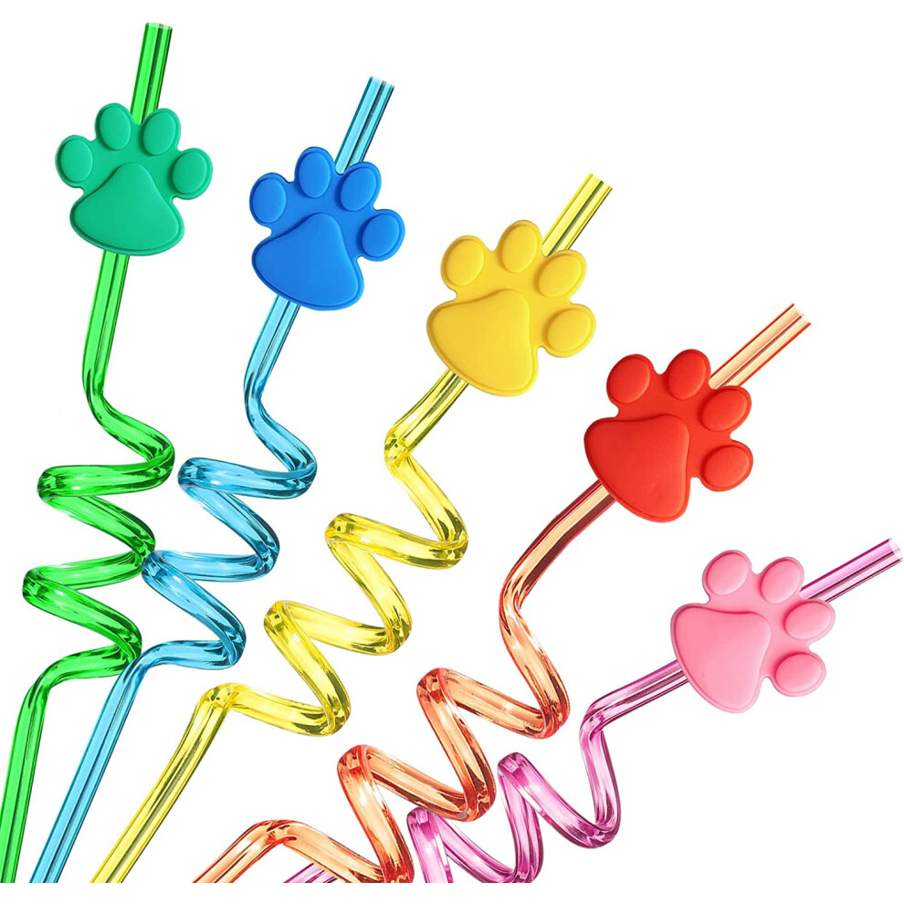 24 Paw Print Drinking Straws with 2 PCS Straws Patrol Cleaning Brush for Pet Dog Puppy Pals Cat Birthday Party Supplies Decorations Favors